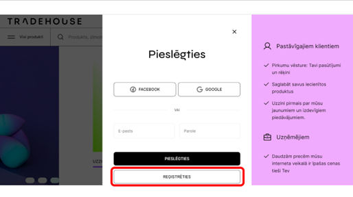 1. Ieej mājas lapā www.tradehouse.lv
