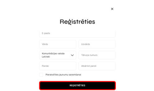 3. Tad klikšķini: REĢISTRĒTIES